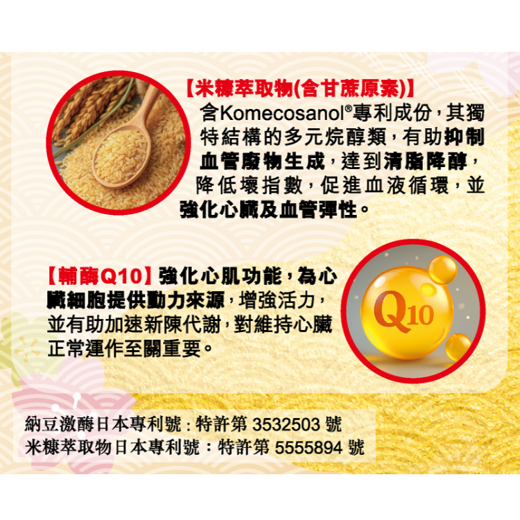 蘊含納豆萃取物、米糠萃取物、輔酶Q10,
