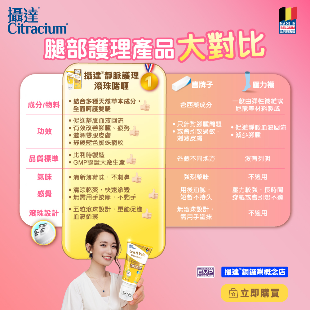 攝達靜脈護理滾珠啫喱蘊含四大有效成分