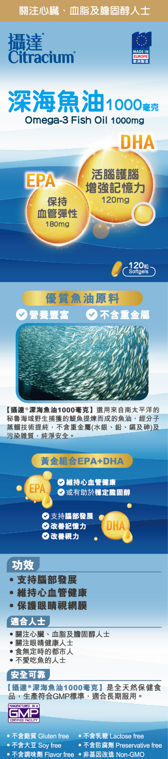 配合「DHA+EPA」的黃金組合,多重守護心臟、腦部、眼睛、皮膚,是您的魚油首選。